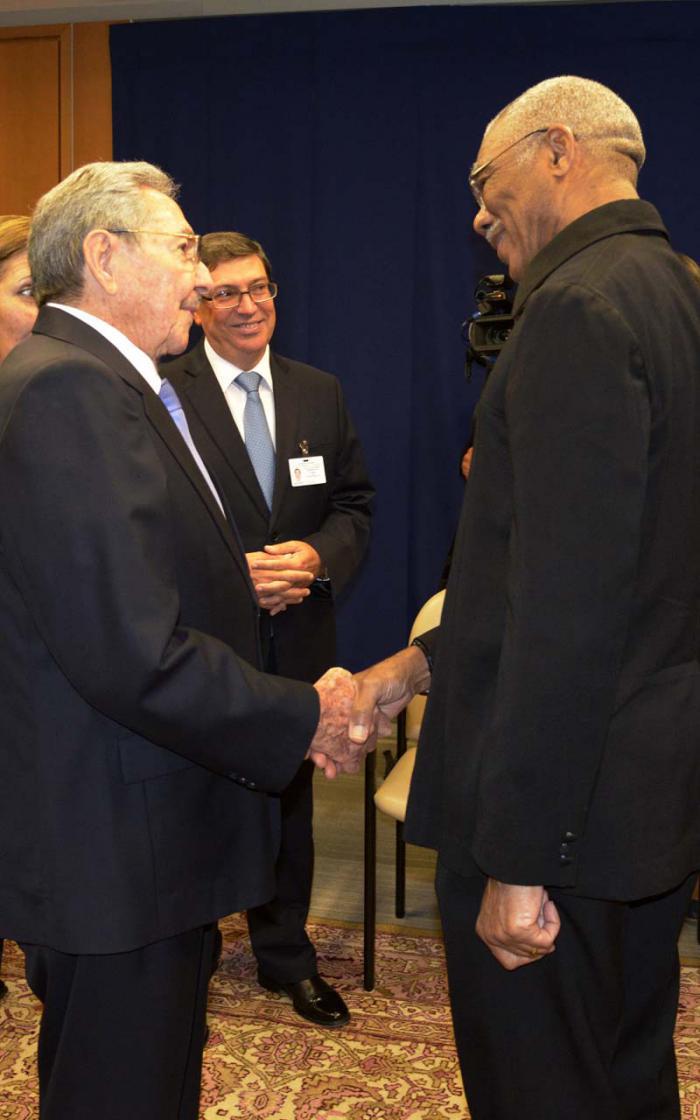 Assim aconteceu no domingo, 27 de setembro, quando, pouco depois de sua participação na conferência de líderes mundiais, Raúl se reuniu com o presidente da Guiana, David Granger, eleito no cargo em maio passado. Foi uma conversa agradável onde salientou a importância da integração na região e trocaram pontos de vista sobre questões bilaterais.