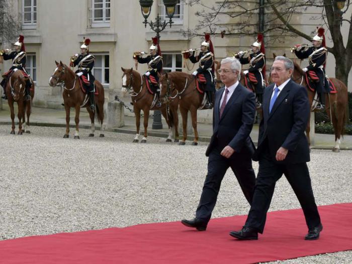 Foi precisamente seu presidente, o senhor Gerard Larcher, segunda figura do governo francês, quem deu as boas-vindas a Raúl ao chegar este ao pátio interior do edifício. Depois da saudação ao chefe da Guarda de Honra, examinar a tropa e a habitual foto para a mídia, entraram à instituição parlamentar onde se desenvolveram as conversações, nas qual se conversou sobre temas de mutuo interesse e se advogou por maior intercâmbio entre o Senado da França e a Assembleia Nacional do Poder Popular.