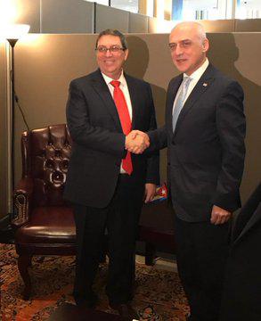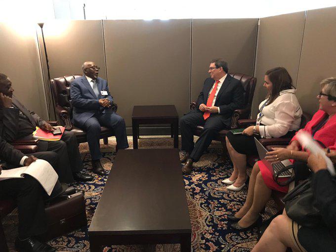 Bruno Rodríguez reuniu-se com o ministro das Relações Exteriores da Costa do Marfim, Marcel Amon-Tanoh, durante a 74ª sessão da Assembleia Geral das Nações Unidas.