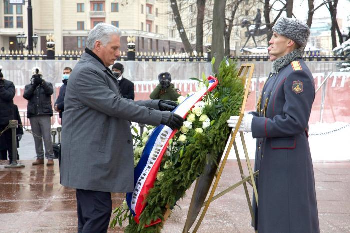Nesta segunda-feira, 21 de novembro, pela manhã, o primeiro-secretário do Comitê Central do Partido Comunista e presidente da República de Cuba, Miguel Díaz-Canel Bermúdez, acompanhado pelos membros da delegação de alto nível que está fazendo uma visita oficial ao país eurasiático até 22 de novembro, chegou a este lugar cheio de simbolismo, onde uma chama, sem se extinguir, reverencia a memória dos caídos.