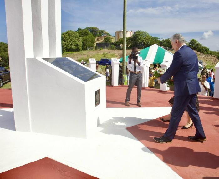 No mausoléu que fica em uma das colinas ao redor do aeroporto internacional Maurice Bishop — onde se encontrava o acampamento da brigada de construção cubana e que, em uma batalha desigual, mostrou o heroísmo de nosso povo ao enfrentar as tropas de elite do império ianque — Díaz-Canel disse que «o Governo dos Estados Unidos planejava destruir a Revolução Granadiana desde seu início, por tudo o que representava nesta região».
