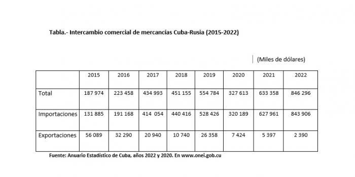 Embora menos espetacular, porque somente pode ser constatado com o decurso dos anos, deve se sublinhar que nos últimos cinco calendários o intercâmbio comercial de mercadorias (exclui os serviços) entre Cuba e a Federação Russa somente foi superado pelos mantidos com a Venezuela, China, Espanha e Canadá, pelo que a Rússia virou o quinto parceiro comercial da nação caribenha.