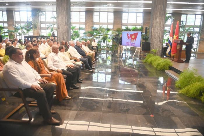 Com a presença do primeiro-secretário do Comitê Central do Partido e presidente da República, Miguel Díaz-Canel Bermúdez, ocorreu ontem, 25 de agosto, à tarde, o evento em comemoração aos 80 anos da Revolução de Agosto e Dia Nacional da República Socialista do Vietnã