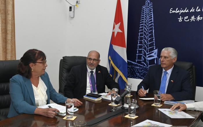O primeiro-secretário do Comitê Central do Partido e presidente da República também manteve conversações com membros da Missão Estatal Cubana na China, funcionários diplomáticos e funcionários da embaixada.