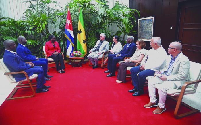 No Palácio da Revolução, o primeiro-secretário do Comitê Central do Partido e presidente da República, Miguel Díaz-Canel Bermúdez, recebeu Sua Excelência a Sra. Celmira de Almeida do Sacramento dos Santos Lourenço, presidente da Assembleia Nacional da República Democrática de São Tomé e Príncipe.