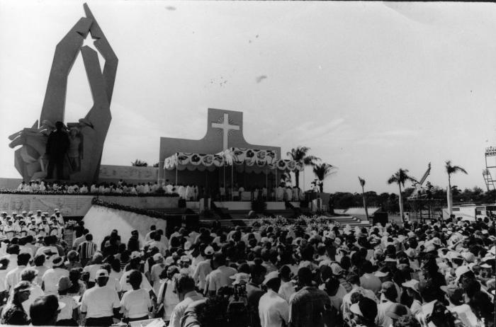 Em sua primeira Santa Missa, em Santa Clara, João Paulo II transmitiu uma mensagem de amor, paz e esperança à família cubana perante mais de 150 mil pessoas reunidas ali. Foto: Miguel ViñasPhoto: Miguel Viñas