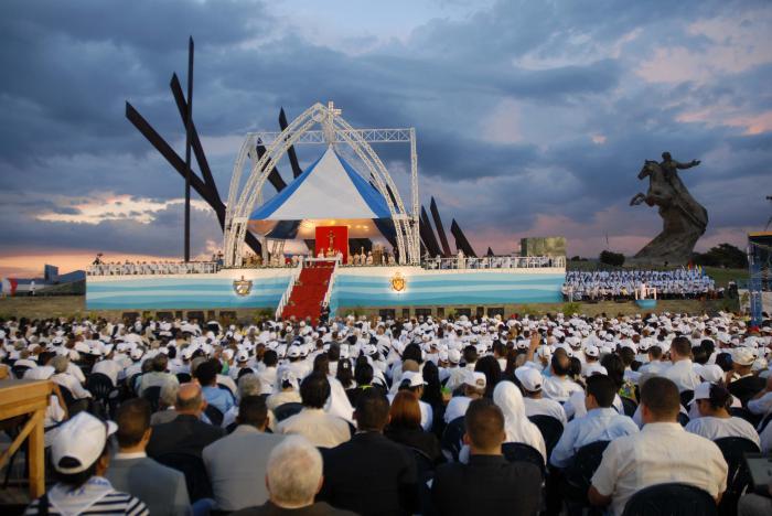 Três horas e meia depois de sua chegada a Santiago de Cuba, Bento XVI oficiou uma missa na Praça Antonio Maceo pelo 400º aniversário do achado da imagem da Virgem da Caridade do Cobre.Photo: Juvenal Balán