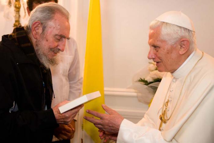 Durante um encontro de meia hora entre Bento XVI e o comandante-em-chefe Fidel Castro, ambos conversaram sobre temas culturais, científicos e religiosos.Photo: Estudio Revolución